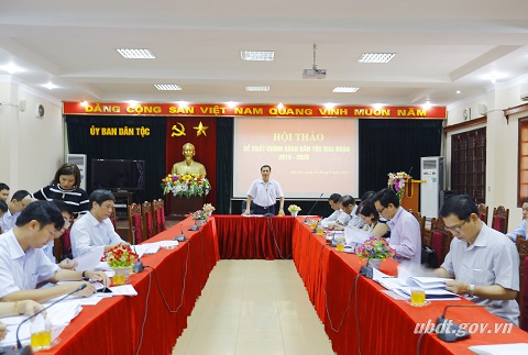 Tại Hội thảo, đồng chí Nguyễn Văn Nhuận, Vụ trưởng Vụ Kế hoạch Tài chính đã trình bày Báo cáo đề xuất chương trình, chính sách dân tộc giai đoạn 2016 - 2020. Theo đó, trong giai đoạn 2016 - 2020, UBDT sẽ triển khai thực hiện các chương trình, chính sách gồm: Các chính sách đặc thù hỗ trợ phát triển kinh tế - xã hội vùng dân tộc thiểu số (DTTS) và miền núi giai đoạn 2016 - 2020; Chương trình phát triển kinh tế - xã hội cho các xã, thôn bản đặc biệt khó khăn (Chương trình 135) thuộc Chương trình mục tiêu quốc gia giảm nghèo bền vững giai đoạn 2016 - 2020; Đề án phát triển kinh tế - xã hội vùng các dân tộc: Mảng, La Hủ, Cống, Cờ Lao; Đề án “Giảm thiểu tảo hôn và hôn nhân cận huyết thống trong vùng DTTS giai đoạn 2015 - 2025”; Chính sách đối với người có uy tín trong đồng bào DTTS; Chính sách sắp xếp, ổn định dân cư cho người di cư tự do từ nước Cộng hòa Dân chủ Nhân dân Lào trở về nước; Đề án hỗ trợ phát triển kinh tế - xã hội các DTTS rất ít người giai đoạn 2016 - 2020; Đề án đẩy mạnh công tác tuyên truyền, vận động vùng đồng bào DTTS và miền núi giai đoạn 2016 - 2020; Chính sách cấp một số ấn phẩm báo, tạp chí cho vùng DTTS và miền núi, vùng đặc biệt khó khăn giai đoạn 2016 - 2020… Để triển khai thực hiện có hiệu quả các chương trình, chính sách, đề xuất, dự kiến tổng nhu cầu vốn thực hiện các chương trình, chính sách là 49.457 tỷ đồng, trong đó, vốn đầu tư phát triển là 34.116 tỷ đồng; vốn sự nghiệp là 9.045 tỷ đồng và vốn vay là 3.931 tỷ đồng.