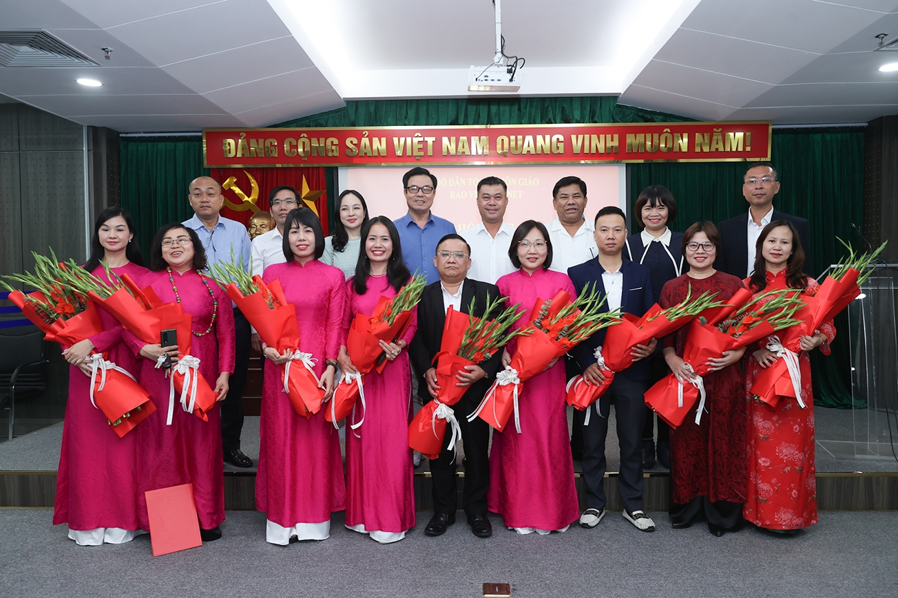 Thứ trưởng Y Thông, Lãnh đạo các Vụ và Lãnh đạo Báo VietNamNet chụp ảnh lưu niệm với các nhân sự được bổ nhiệm (Ảnh: Lê Anh Dũng)