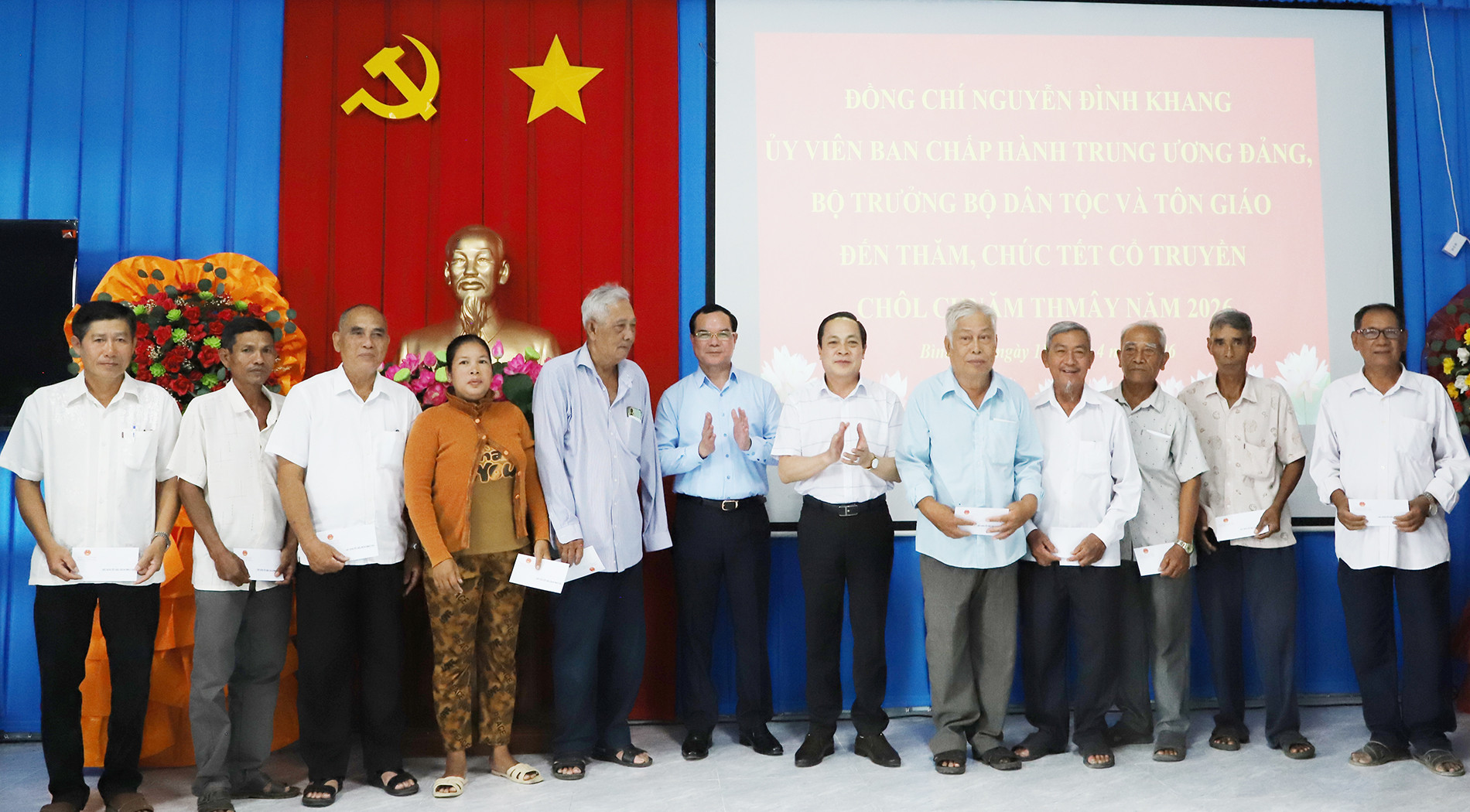 Nhân dịp này, Bộ Dân tộc và Tôn giáo đã xây dựng, triển khai kế hoạch tổ chức các đoàn công tác do lãnh đạo Bộ dẫn đầu đến thăm hỏi, tặng quà các tập thể, cá nhân tiêu biểu, hộ nghèo là người dân tộc Khmer, chức sắc cao cấp Phật giáo Nam tông Khmer tại khu vực Nam Bộ, trong đó có tỉnh Vĩnh Long.
