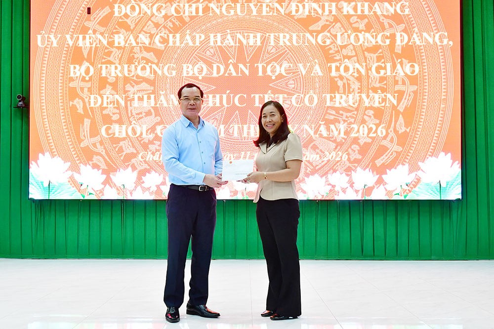 Bộ trưởng Nguyễn Đình Khang gửi lời chúc các vị chức sắc, chư tăng và toàn thể đồng bào Khmer tỉnh Vĩnh Long đón Tết cổ truyền Chôl Chnăm Thmây năm 2026 an khang, thịnh vượng, hạnh phúc, đồng thời, mong muốn đồng bào, các vị chức sắc, nhân sĩ, trí thức người Khmer tiếp tục cùng các dân tộc khác đoàn kết, chung sức, đồng lòng, dưới sự lãnh đạo của Đảng, thi đua lao động sản xuất, phấn đấu cùng cả nước xây dựng đất nước ngày càng văn minh, giàu đẹp, nhân dân ngày càng ấm no, hạnh phúc.