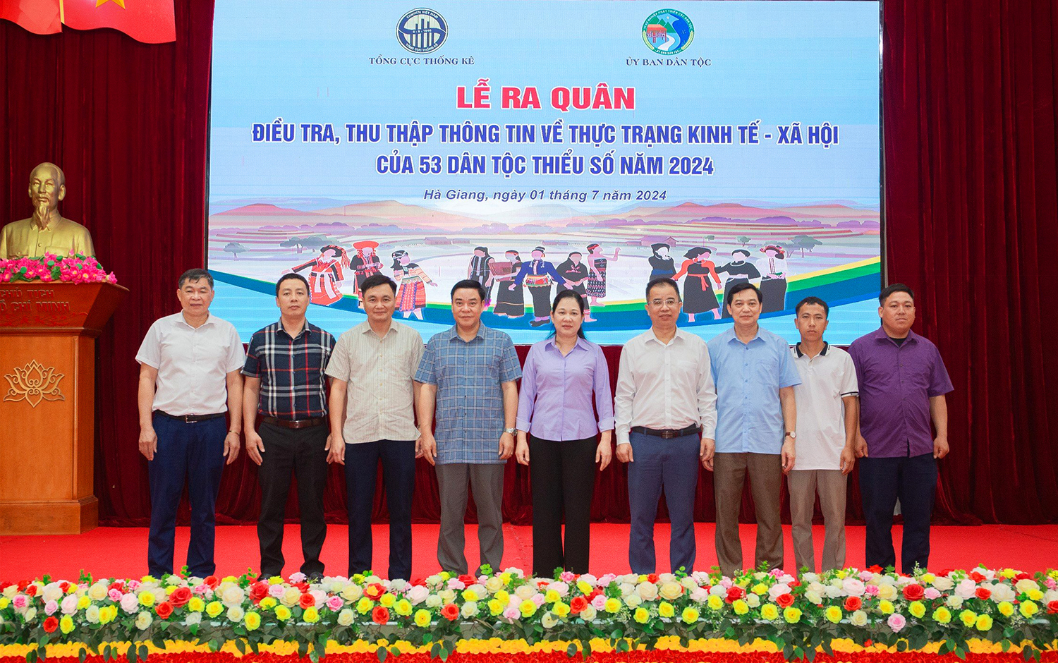 Ngày 01/7/2024, tại huyện Vị Xuyên, tỉnh Hà Giang, Ủy ban Dân tộc (UBDT) phối hợp với Tổng Cục Thống kê tổ chức Lễ ra quân điều tra, thu thập thông tin về thực trạng kinh tế - xã hội của 53 dân tộc thiểu số năm 2024. Bà Nông Thị Hà, Thứ trưởng, Phó Chủ nhiệm UBDT cùng ông Lê Trung HIếu, Phó Tổng Cục trưởng Tổng cục Thống kê đồng chủ trì Lễ ra quân.