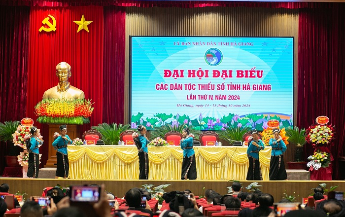 10:42 AM 15/10/2024 | Lượt xem: 1974 In bài viết |Với Chủ đề: “Cộng đồng các dân tộc tỉnh Hà Giang đoàn kết, đổi mới sáng tạo phát huy lợi thế, tiềm năng hội nhập và phát triển bền vững”, Đại hội Đại biểu các DTTS tỉnh Hà Giang lần thứ IV, năm 2024 đã diễn ra trang trọng tại TP. Hà Giang ngày 15/10. Thứ trưởng, Phó Chủ nhiệm Ủy ban Dân tộc Nông Thị Hà dự và phát biểu chỉ đạo tại Đại hội.