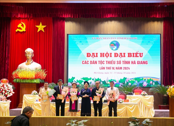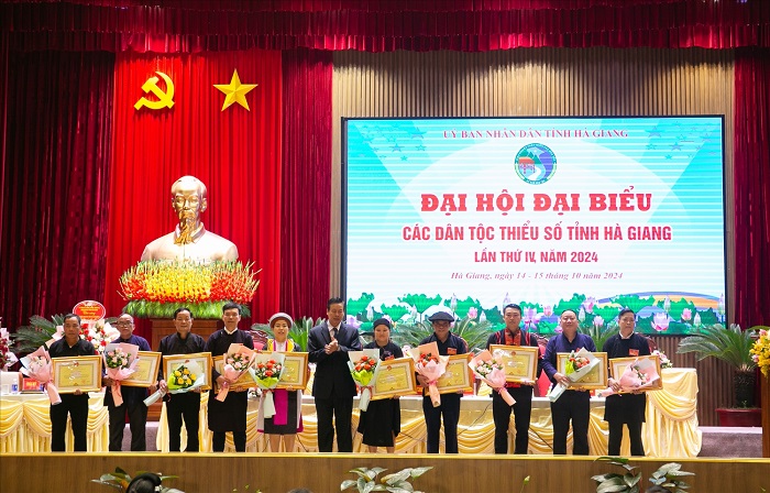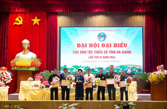Dịp này, Thứ trưởng, Phó Chủ nhiệm UBDT Nông Thị Hà đã thay mặt lãnh đạo UBDT tặng Bằng khen cho 06 cá nhân và trao tặng Kỷ niệm chương "Vì sự nghiệp phát triển các dân tộc" cho 05 cá nhân đã có thành tích xuất sắc trong thực hiện công tác dân tộc và chính sách dân tộc. Chủ tịch UBND tỉnh Hà Giang trao tặng Bằng khen cho 06 tập thể và 10 cá nhân đã có thành tích xuất sắc trong thực hiện công tác dân tộc và chính sách dân tộc thời gian qua.