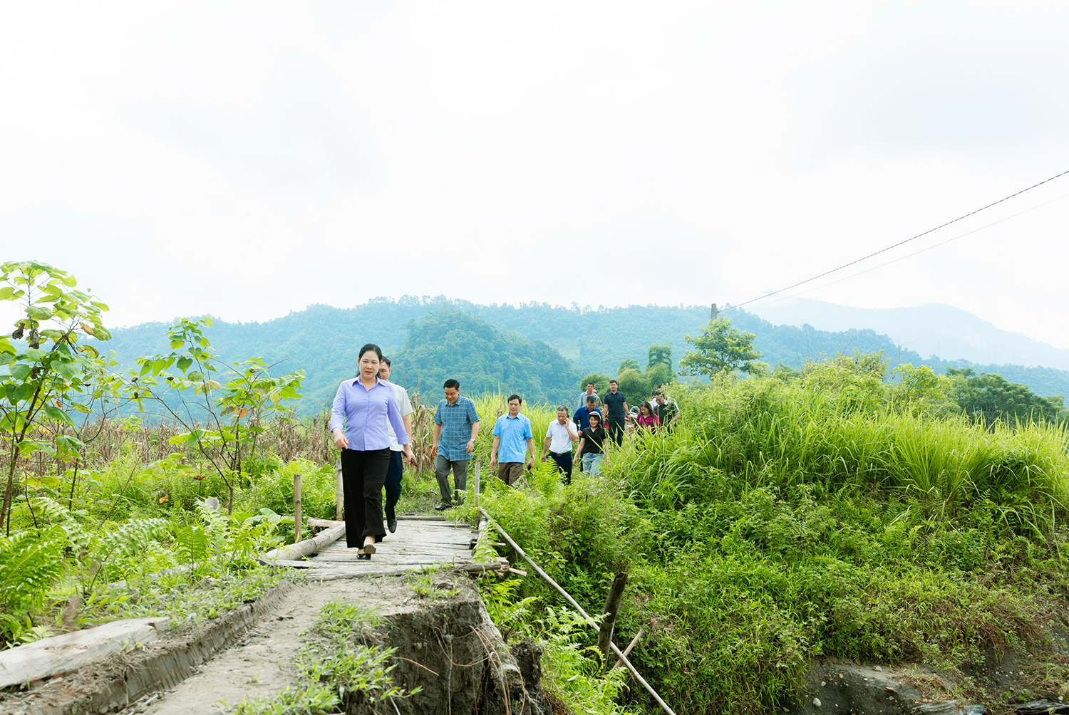 Thứ trưởng, Phó Chủ nhiệm Nông Thị Hà cùng đoàn công tác đi đến các hộ gia đình thuộc xã Đạo Đức, huyện Vị Xuyên để điều tra, thu thập thông tin