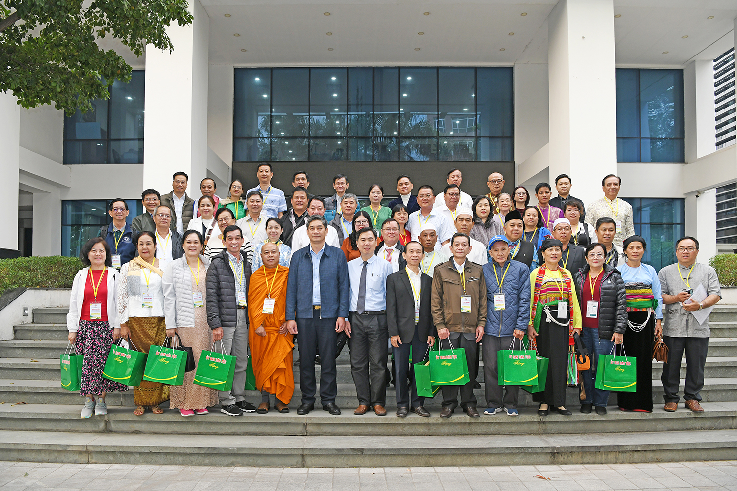 Thứ trưởng, Phó Chủ nhiệm Y Vinh Tơr chụp ảnh lưu niệm cùng Đoàn đại biểu NCUT tiêu biểu trong đồng bào DTTS TP.HCM trước trụ sở cơ quan UBDT.