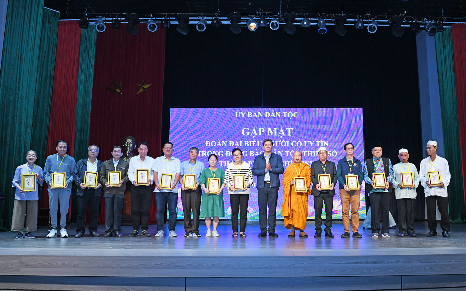 Nhân dịp Đoàn đại biểu NCUT tiêu biểu của TP.HCM đến thăm UBDT, Thứ trưởng, Phó Chủ nhiệm Y Vinh Tơr đã tặng quà lưu niệm của UBDT và chụp ảnh lưu niệm cùng Đoàn đại biểu.